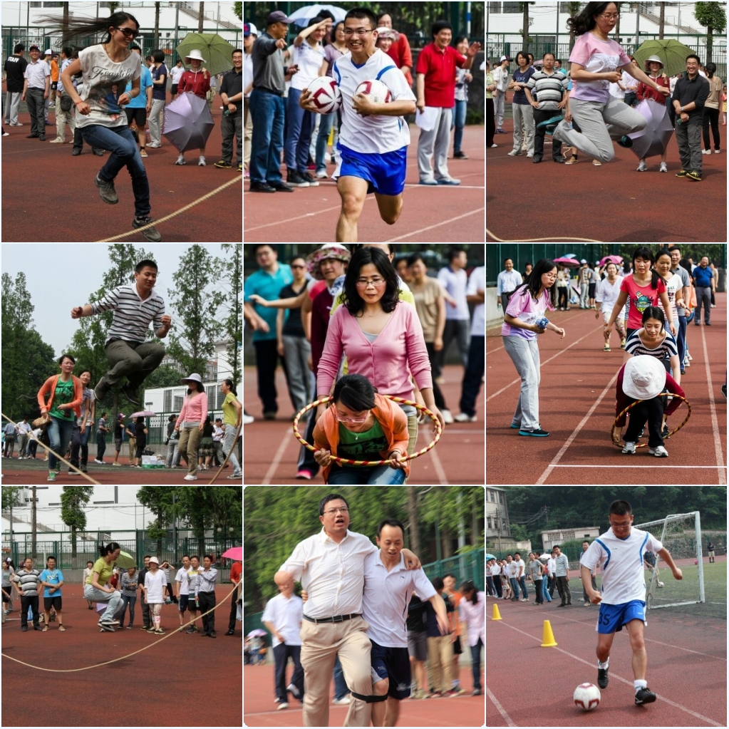 2014年5月21日下午,我院教职工积极参与了校工会在校本部体育场举办的趣味运动会。本次趣味运动会设有跳大绳、两人三足、抱足球接力、呼啦圈接力与足球绕杆接力等项目。