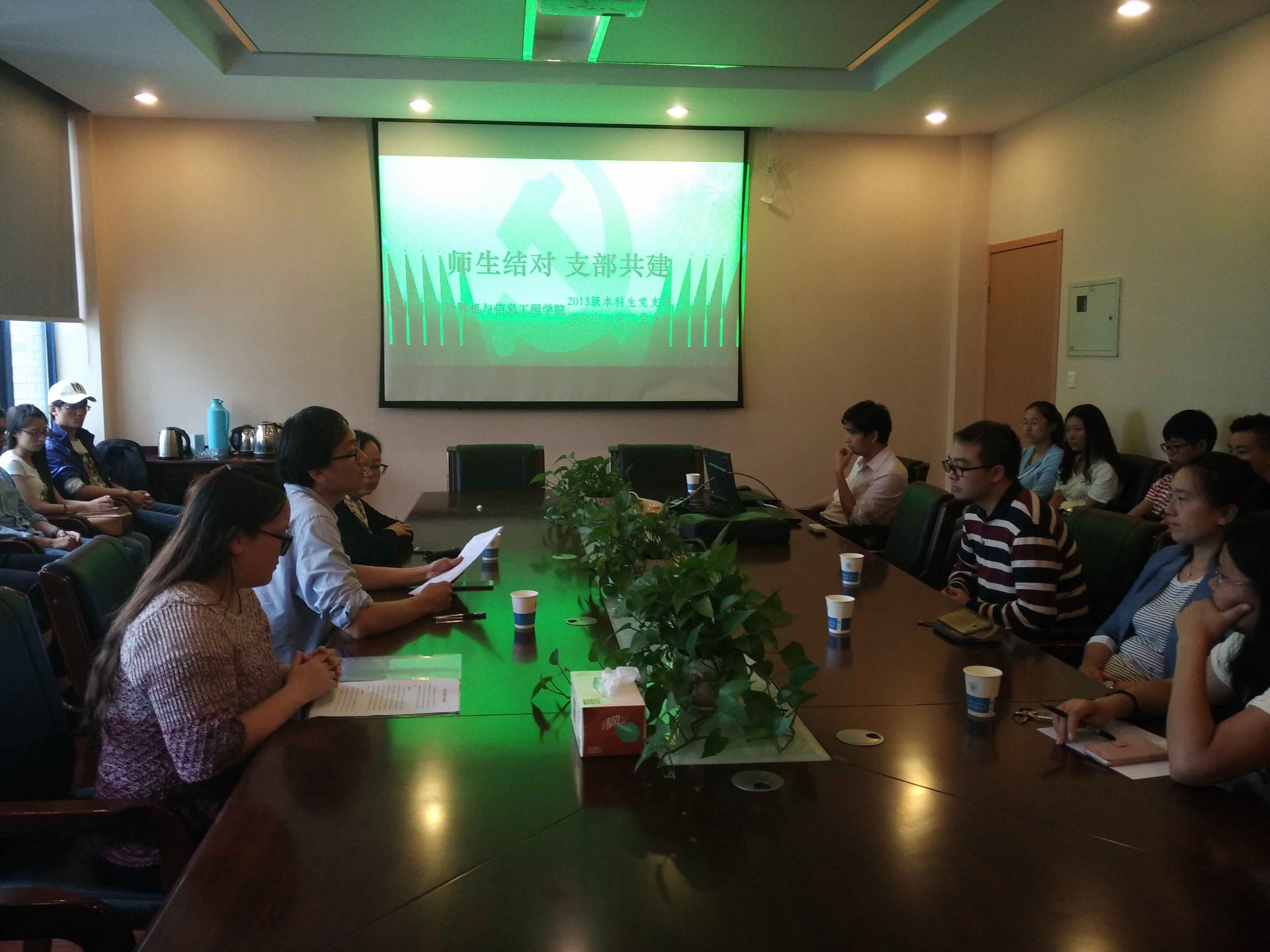 活动中,张云飞老师介绍学生党建、教学科研以及学科建设等方面取得的成绩和需迫切解决的问题,希望师生结对支部共建活动能产生示范性效应,实现资源共享、优势互补和共同提高,优化支部工作实际效果,提升党支部成员的政治素养和工作能力,完善学风建设,提高创新实践教学质量和效果,促进教育教学的有机融合,激发高校基层党支部的活力,提升党建工作整体水平。本科生支部表示将积极主动,认真严谨地与教工党支部一起将结对共建落到实处,做出成效。院党委副书记张炜对本次结对活动提出了一些建议,期待将重点对“学生党员如何在学风建设中发挥作用”进行思考和实践,结合“两学一做”学习教育,实现共建支部党员的共同提高。实验中心余宇峰老师针对15级学生骨干进行专题报告讲座,主要讲述大学本科期间所需注重的课程以及实践经验的积累,期待经由部分学生骨干、学生党员,将计算机专业的特点与学习方法传递到学生群体中,把“两学一做”落实到学习与工作中。