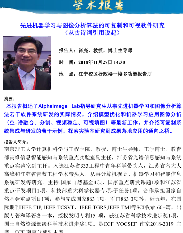 学术报告:先进机器学习与图像分析算法的可复制和可视软件研究(从古诗词引用说起)