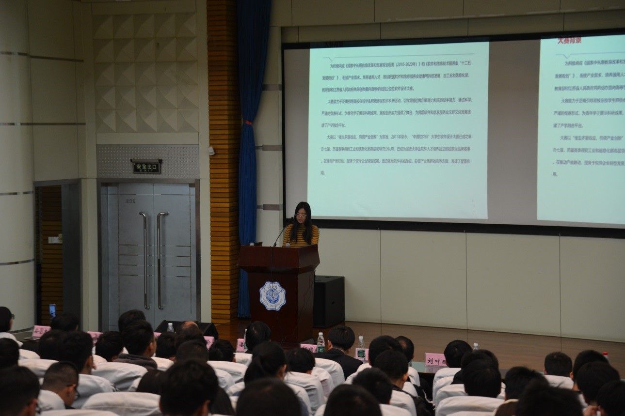 大赛组委会代表安苾寒从大赛的背景及意义、大赛的历史、大赛的成果和亮点、第八届大赛的整体安排和华东分赛区的情况等方面对大赛进行了详细介绍。“中国软件杯”大赛从2011年至今,已成功举办七届,历届赛事得到工业和信息化部、教育部和江苏省人民政府高层领导的充分认可,已成为促进大学生软件人才培养设立的国家级品牌赛事。