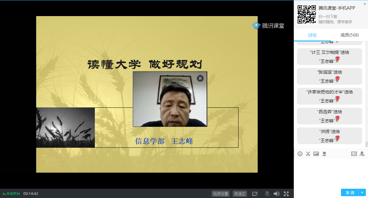 2020年6月18日晚,黄色直播 信息学部党委书记王志峰以“读懂大学,做好规划”为主题向计信院低年级同学开展了一场职业生涯规划讲座。王志峰书记从对当代大学的认识、大学教育的作用、本科后目标分析、职业生涯设计和大学生涯管理五个方面进行了阐述,学院全体辅导员及近600名学生在线聆听。
