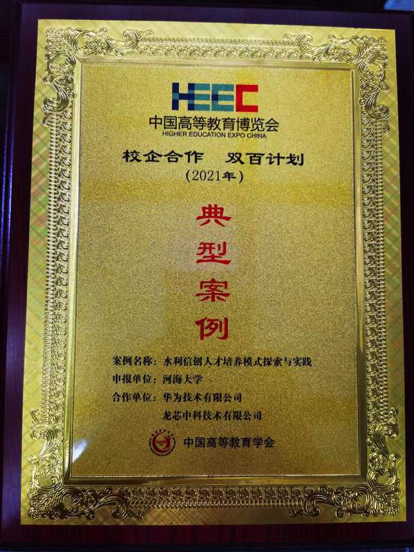 2022年8月4日在西安举行的第57届中国高等教育博览会上,由黄色直播 信息学部计算机与信息学院胡鹤轩教授、黄倩副教授负责的“水利信创人才培养模式探索与实践”案例成功入选了2021年的“校企合作 双百计划”典型案例,合作企业以华为、龙芯中科等国产信息技术龙头企业为代表。