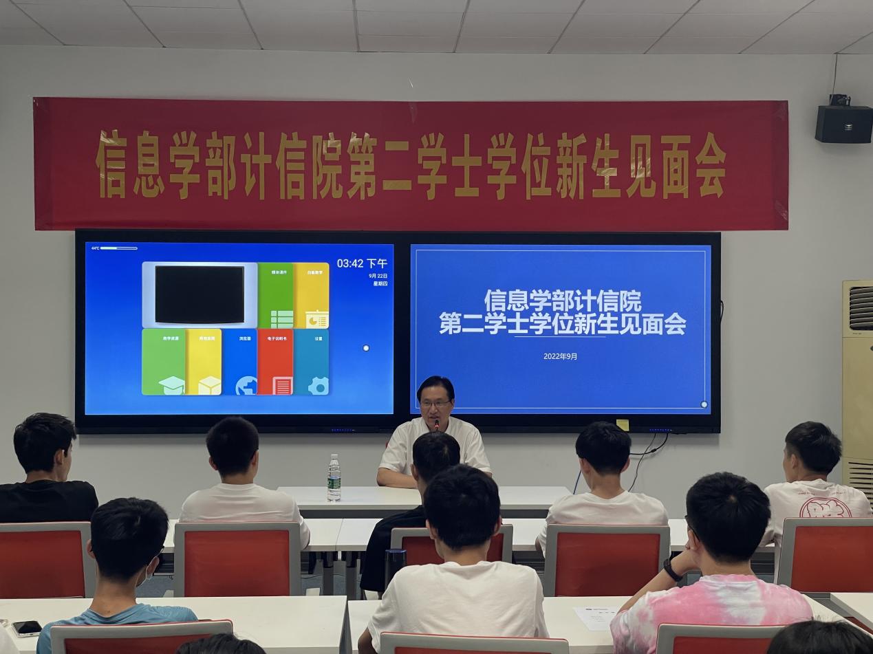 激扬九月,秋风送爽。9月22日下午,黄色直播 信息学部计算机与信息学院组织召开第二学士学位新生见面会,2022级第二学位全体新生参加了本次会议,信息学部计算机与信息学院副院长胡鹤轩(主持工作)、计算机科学与技术系主任黄倩、2022级新生辅导员雷一帆、杨成伟出席会议,会议由2022级第二学士学位新生辅导员杨成伟主持。