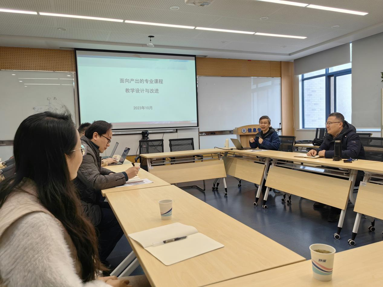 张鹏程副院长详细介绍了孙涵教授在工程教育专业认证领域的较高认知与水平,希望孙教授不吝赐教,也希望与会教师抓住机会认真学习、积极交流,更好地开展下一阶段的工作。孙涵教授以“面向产出的专业课程教学设计与改进 ”为题,坚定“学生中心、产出导向、持续改进”工程教育理念,积极探索工程教育背景下课程教学改革与建设的思路和方法,从标准与要求、课程教学目标设计、课程考核与评价、课程持续改进四个方面,全方位地解读了课程教学建设与改革的全过程。基于对工程教育认证的理解与实际审阅中发现的问题,给出了有针对性、实操性强的改进建议。
