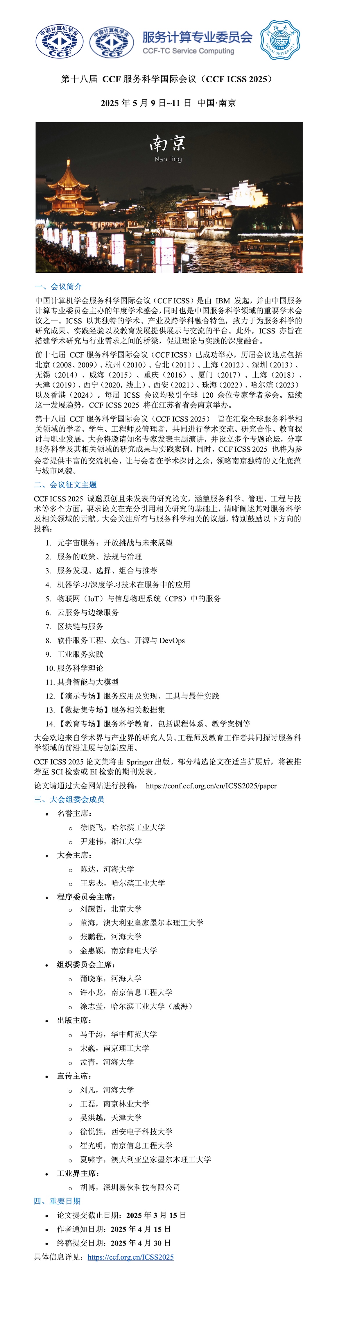 第十八届 CCF服务科学国际会议(CCF ICSS 2025)会议指南